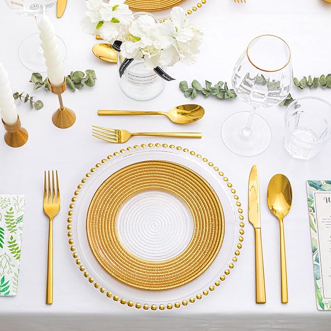 KINGSTONE Gold Silverware Set, 60-Piece Forged Flatware Set Cutlery Set Premium Stainless Steel, Service for 12, for Kitchen, Home, Wedding, Party, Mirror Polished and Dishwasher Safe