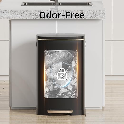 - 🚮 Large Capacity & Odor Lock Technology: 50L (13 Gallon) extra-large capacity reduces frequent trash runs, perfect for busy kitchens. Sealed lid with odor-blocking design traps smells, keeping your space fresh and clean.