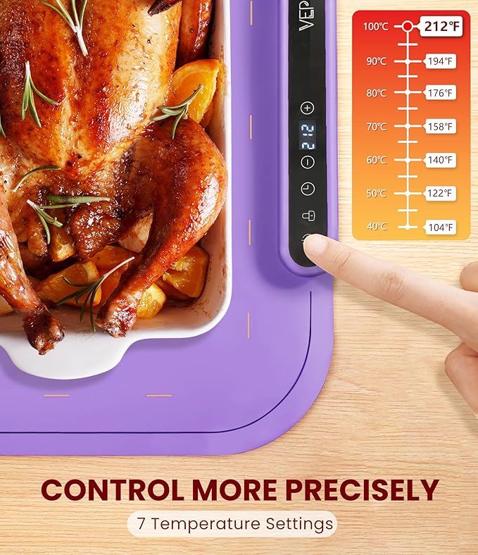 Food Warming Mat for Buffet, VEPOKA Food Warming Mats for Countertop, Silicone Heating Mat with 7 Temperature Levels& Auto Shut-Off, Food Warmers for Parties, Gatherings, Everyday Use