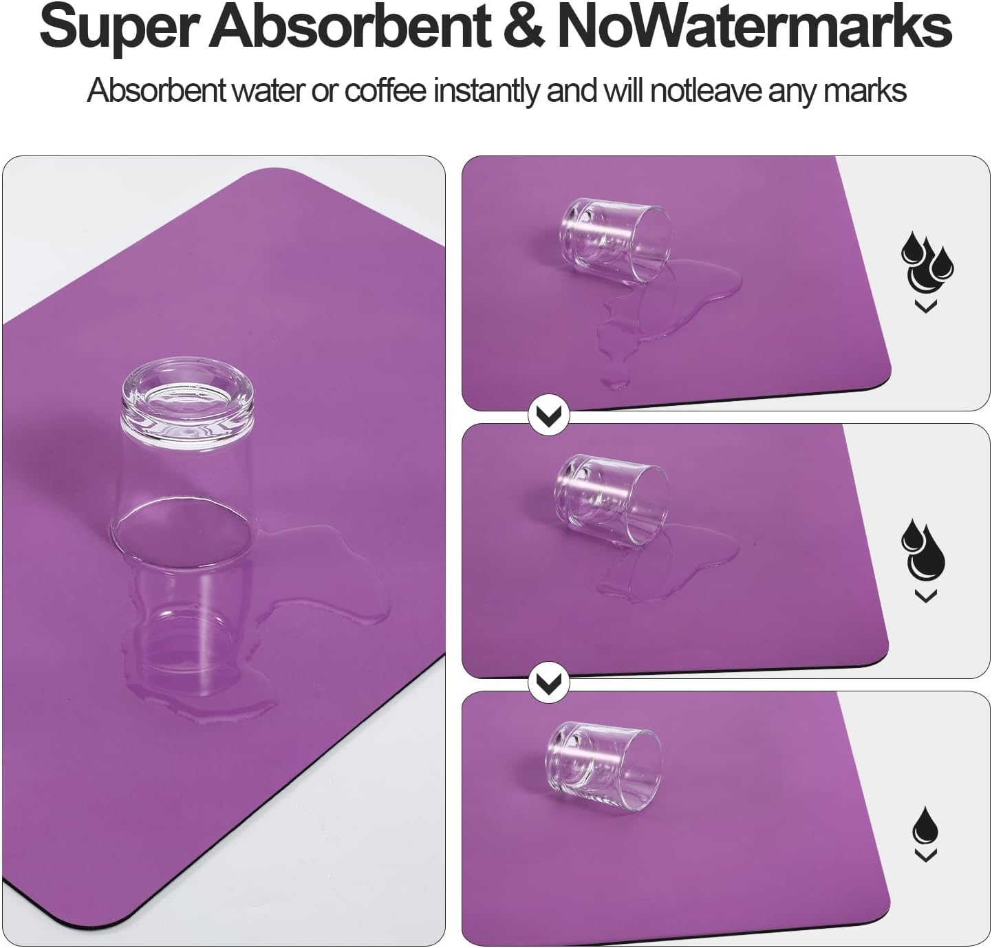 Dish Drying Mat for Kitchen Counter | Coffee Bar Mat for Countertops | Heat Resistant Drainer Mat with Non-slip Rubber Backed | Hide Stain Kitchen Absorbent Draining Mat | Purple 18"x24"