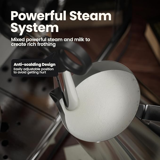 - 【Milk Frothing System】Our coffee makers with milk frothers are equipped with a powerful steam wand that allows you to create delicate & rich aromas, achieve stunning milk foam art, and enhance the flavor of your coffee. Easily adjust the stainless steel steam wand using the side button to create silky smooth milk froth.