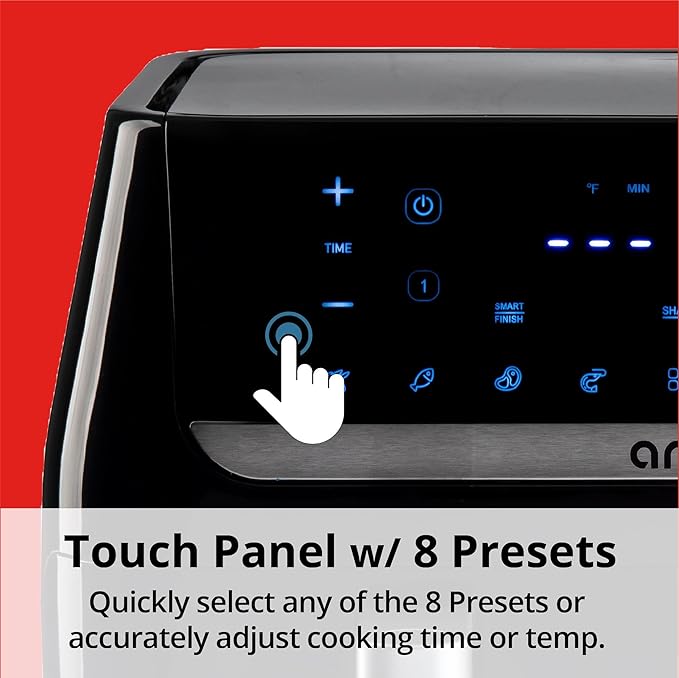 Aria 10 Qt Dual Air Fryer with 2 Baskets, Smart Sync Dual Air Fryers, Easy Clean Dishwasher Safe Double Basket, Large Sized for Family Meals, XL Touchscreen Display, 8 Meal Presets, Black