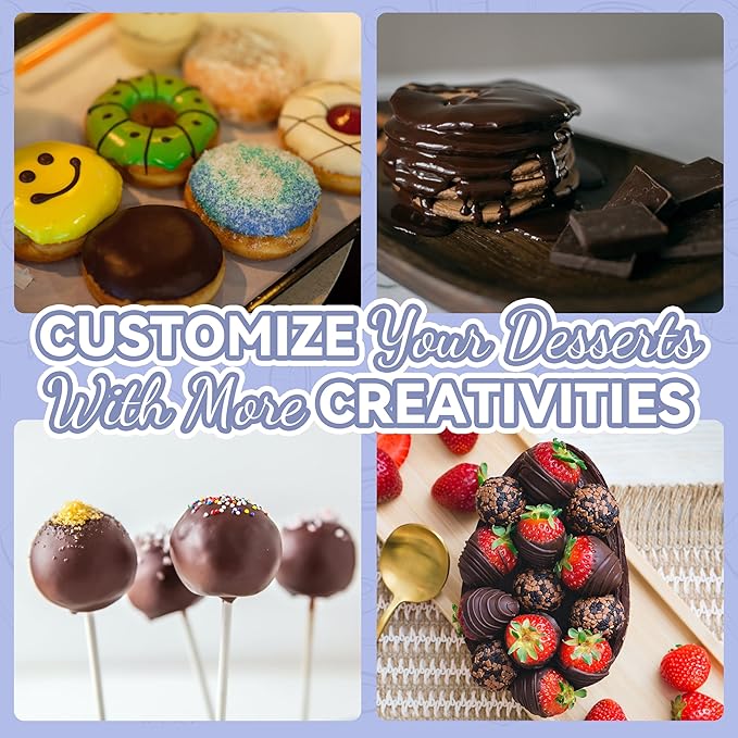 - [EFFORTLESS CREATIONS]: Craft decadent treats like chocolate-dipped pretzels, cake pops, and fresh strawberries with this versatile Party Desserts Melting Pot. Featuring a precision-pour spout and ergonomic, heat-resistant grip, it enables seamless drizzling directly onto goodies or into pastry bags for professional-grade decorating.