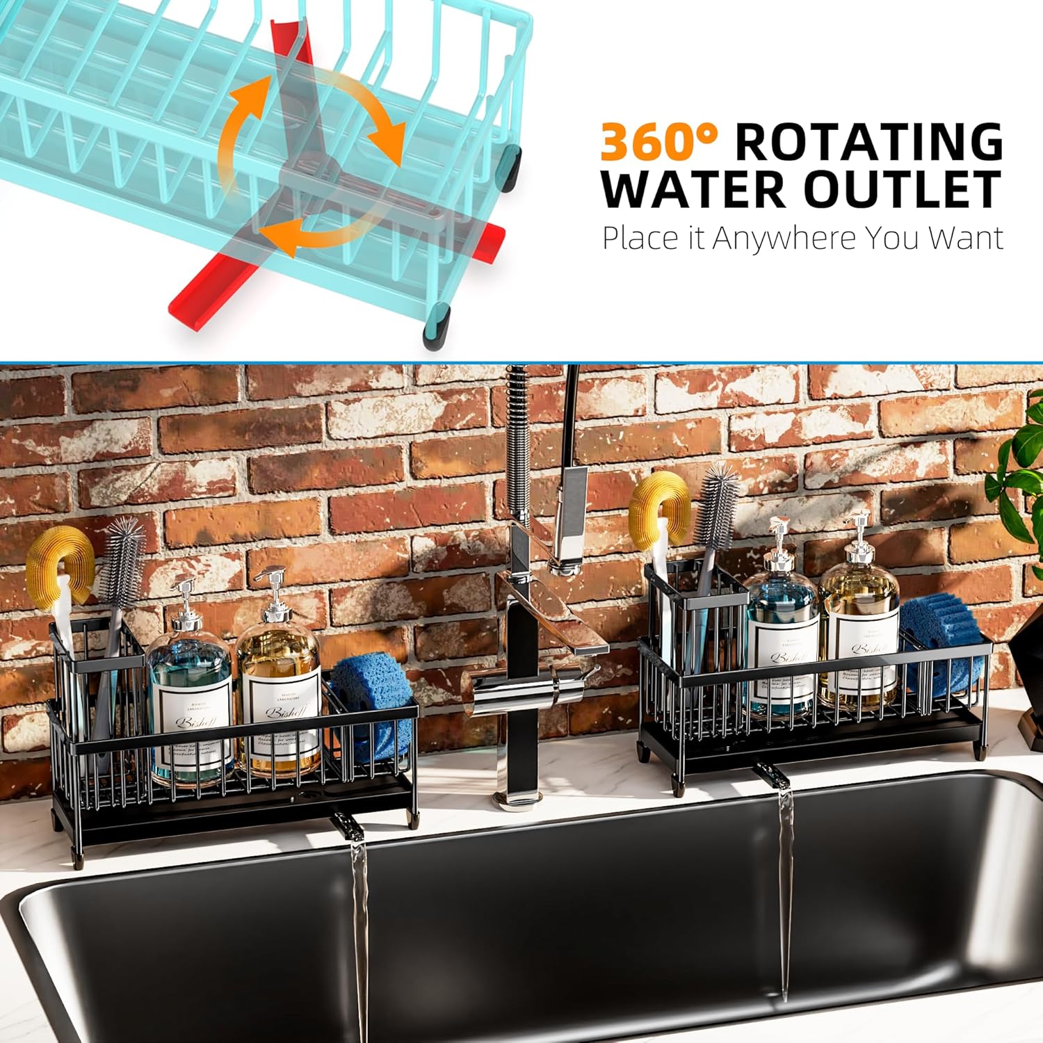- ăROTATABLE NOZZLEăThis kitchen sink caddy is equipped with a rotatable nozzle that can be rotated in three directions so that the water in the sponge can flow to the sink. No water will remain on the countertop, and you don't need to pull out the drip tray frequently for cleaning, which saves cleaning time.