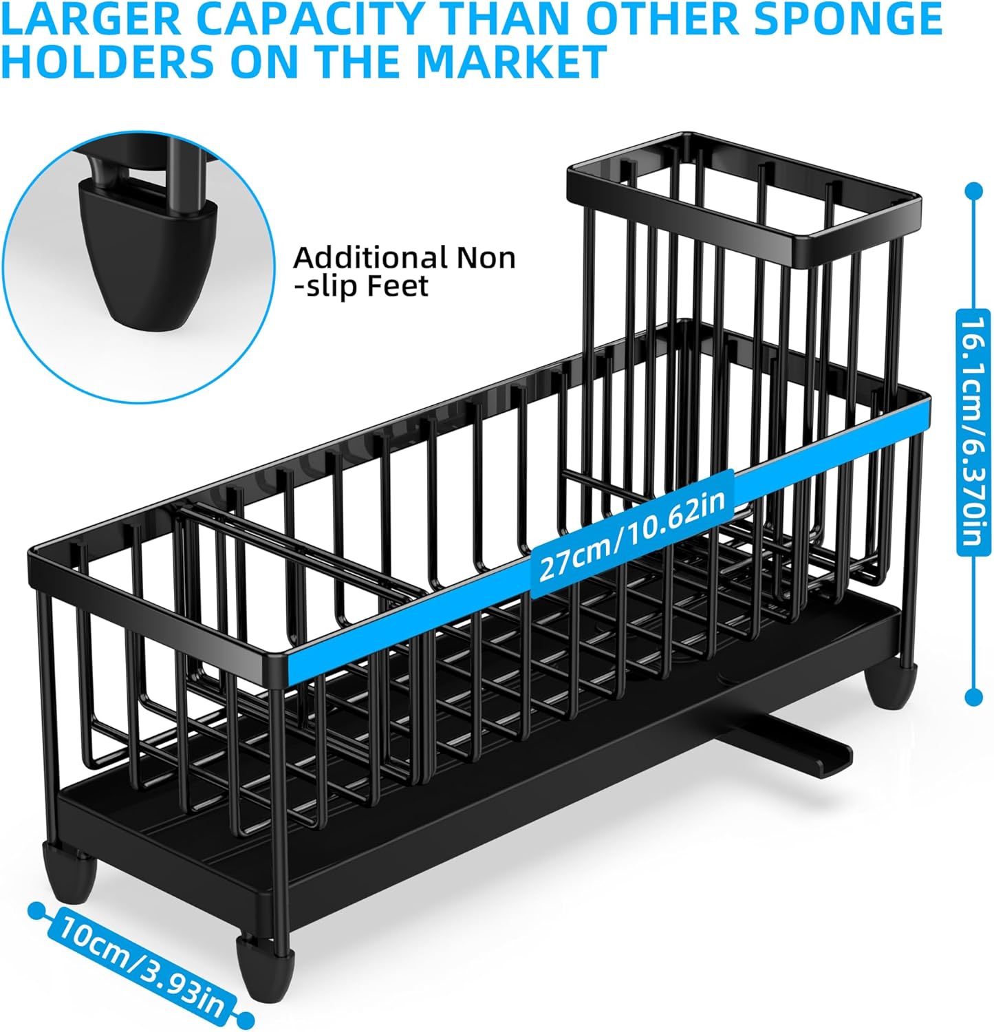 Moforoco Extra Large Sponge Holder for Kitchen Sink Organizer Caddy, Dish Brush Scrubber Holder,Stainless Steel Sink Box Utensil Holder,Soap Dispenser Set Tray Counter Accessories & Storage Rack