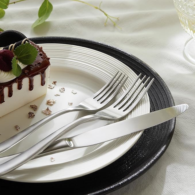 - VINTAGE SILVER FINISH: The HIKAA Silverware Set is crafted of high-performance 18/0 stainless steel, features a vintage finish that adds a nice gentle curvature to the handle. It make your tableware less fingerprints, also makes dishwasher cleaning easier without damaging the surface texture.
