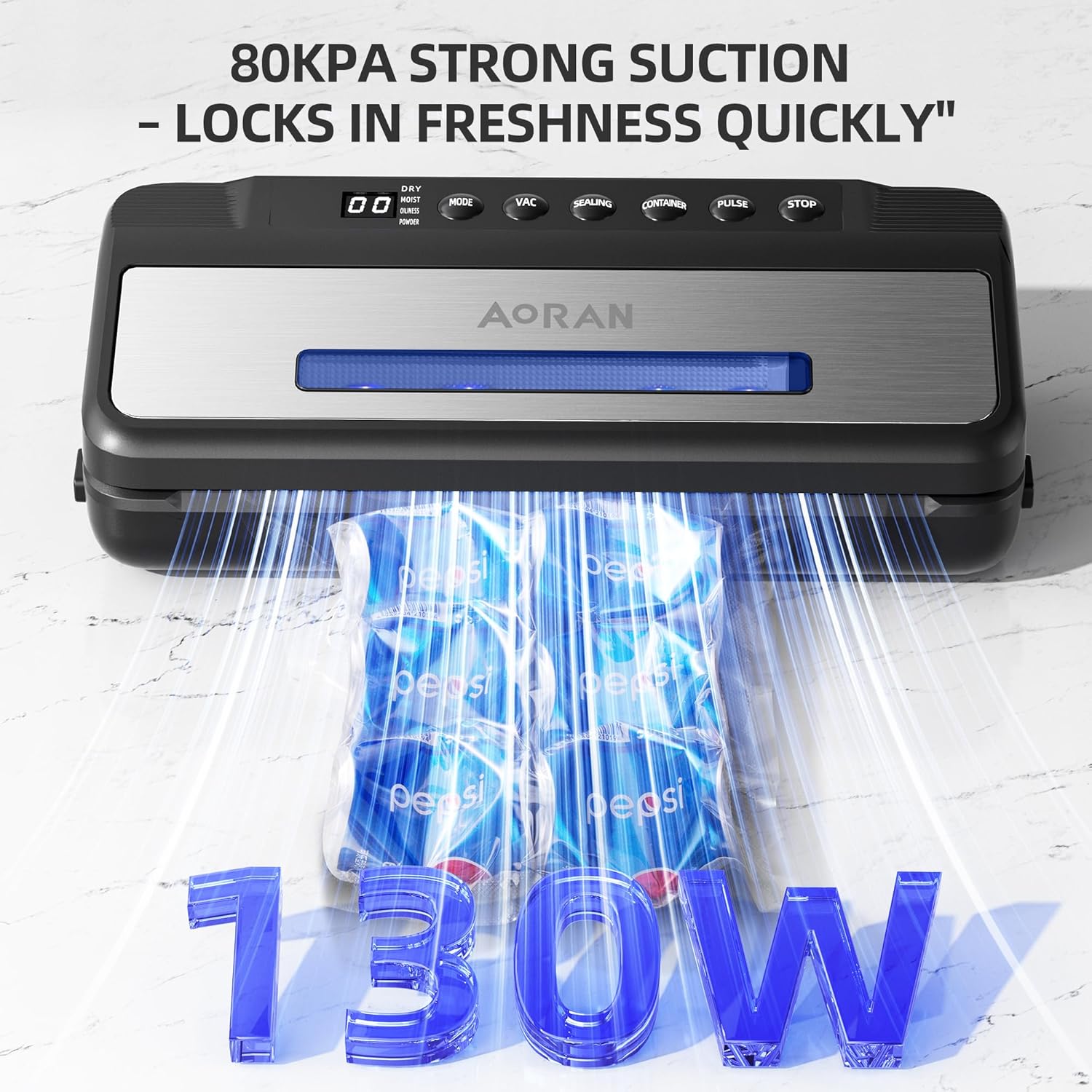 AORAN Vacuum Sealer with Transparent Window, 80KPa Powerful Food Vacuum Sealer, Compact and Easy-to-Use, Includes 5 Bags & 1 Roll, Dry & Moist Modes for Food Preservation