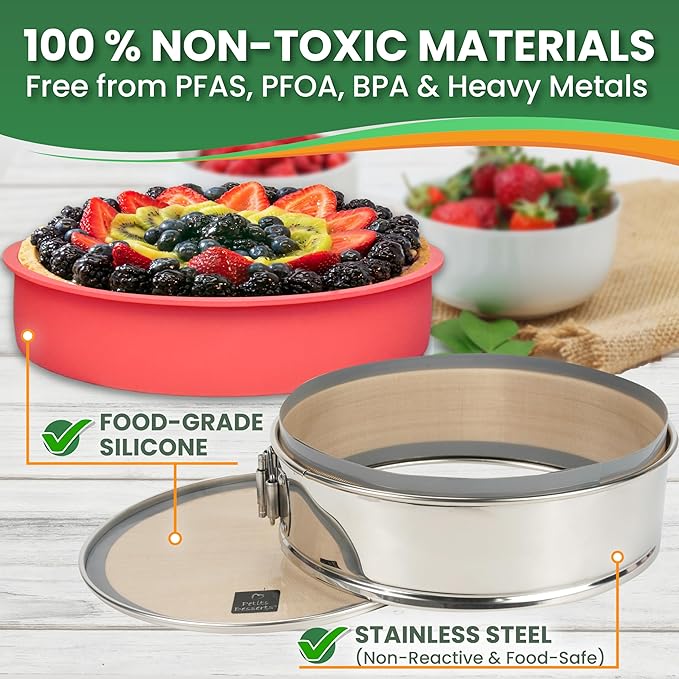 - 100% NON-TOXIC, NON-REACTIVE MATERIALS FOR SAFE, HEALTHY BAKING – Bake with confidence using our cheesecake water bath pan and food-grade silicone liner and pan protector. Free from PFOA, PFOS, B.P.A., and lead, with our set, you can forget about the release of harmful chemicals into your food, ensuring a safe and healthy baking experience for you and your family.