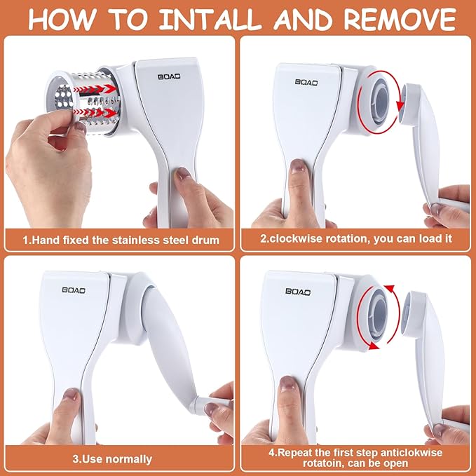 - Boao Rotary Cheese Grater Manual Handheld Cheese Grater with Stainless Steel Drum for Grating Hard Cheese Chocolate Nuts Kitchen Tool (White)