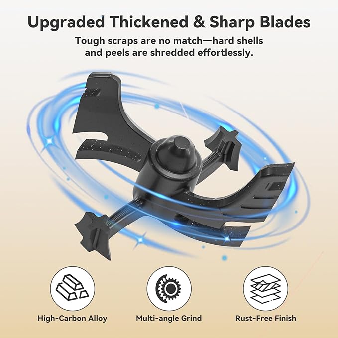 - High-Efficiency Waste Reduction: With an upgraded high-temperature drying and grinding system, electric composter reduces waste by up to 90% in just 2.5 hours. The reinforced, sharp blades effortlessly handle tough waste like pork bones and fruit/vegetable scraps, making composting easy.