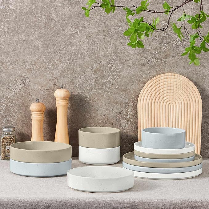 - Slide-proof Bottom, each bowl and plate has one or two circles on the bottom that are not covered by the glaze, this thoughtful design prevents accidental slips and skidding, making it ideal for everyday use, enjoy dining experience with this practical feature that ensures your dinnerware stay securely in place