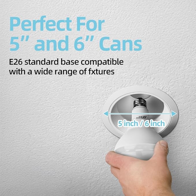 - 💡 Easy, Hassle-Free Installation: Designed with a standard E26 base, these BR30 bulbs fit most recessed can lights and ceiling fixtures—no tools or adapters required. Just screw in for instant, energy-efficient lighting anywhere you need it.