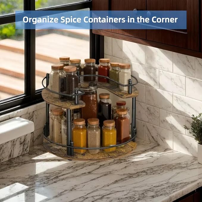 - Quality Materials: Made from solid wood and metal with non-slip feet pads, this lazy susan organizer not only adds charm to your kitchen, but also ensures durability and long-lasting performance