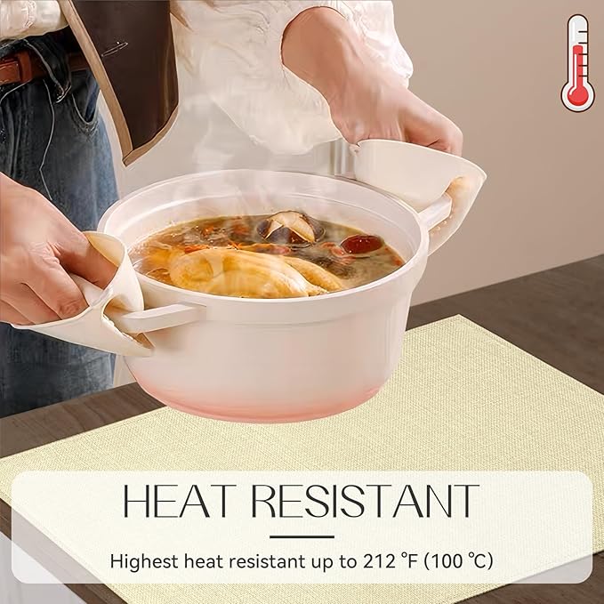 - THICKENED AND HEAT-RESISTANT: Our placemats feature a double-layered faux linen fabric which is heat-resistant up to 220°F (100°C) . They will prevent hot dishes, stains, and scratches from damaging your tables or furniture.