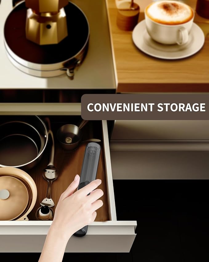 - EASY TO STORE AND CARRY: This electric milk frother features a storage tube to protect against dust and keep the whisks clean. Its lightweight and portable design allows you to easily carry it in your bag for use in hotels, offices or outdoor settings