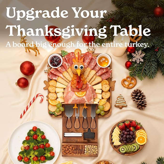 - Party Like a Pro - Impress guests with SMIRLY's walnut wood cheese board and large charcuterie board. Designed for easy entertaining, it perfectly displays a variety of delicious treats, including meats, cheeses, crackers, veggies, and fruits.