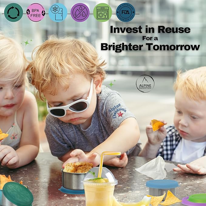 - Perfect Fit: Use Alpine Elevation stainless steel condiment containers for dips and sauces, or as metal snack containers for any adventure. Your ultimate stainless steel dip container!
