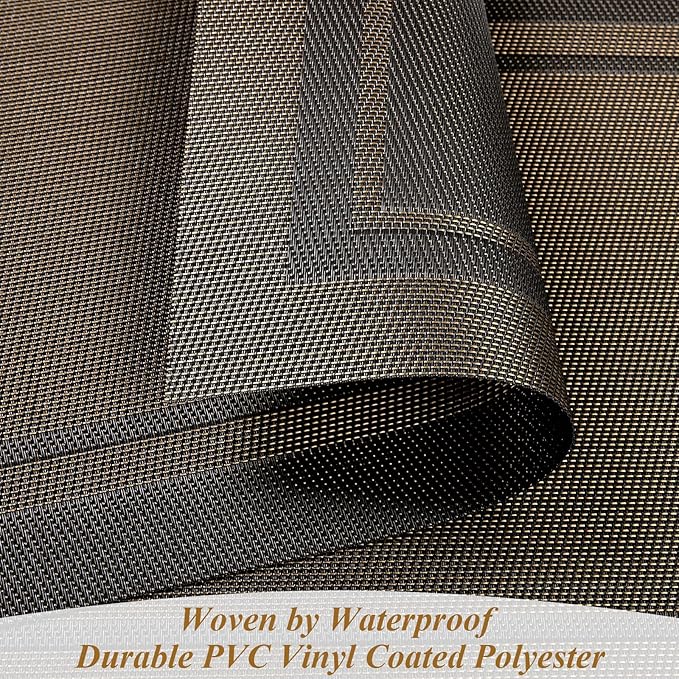 SHACOS Woven Vinyl Placemats Set of 4 Wipe Clean Place Mats for Dining Table Heat Resistant PVC Weave Table Mats Indoor Outdoor (4, Frame Black Gold)