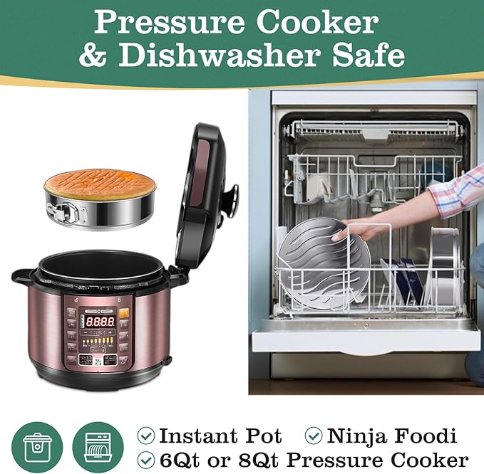 - TOXIN-FREE & DURABLE 304 STAINLESS STEEL - Crafted with food-grade 304 stainless steel, the springform pan resists rust, deformation, and corrosion for lifelong use. Oven safe up to 500°F, pressure cooker compatible, and multiple baking options for you to choose from.