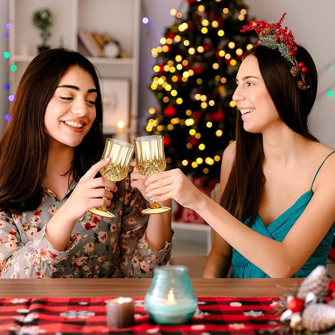 XUWAIDSGN 48 Pcs 7oz Plastic Vintage Wine Glasses Drinking Glasses Unbreakable Wedding Glassware Crystal Water Goblets Reusable Drinkware Vintage Champagne Flutes (48, Amber)