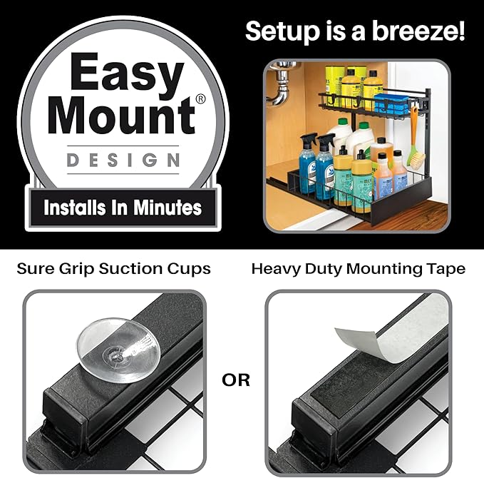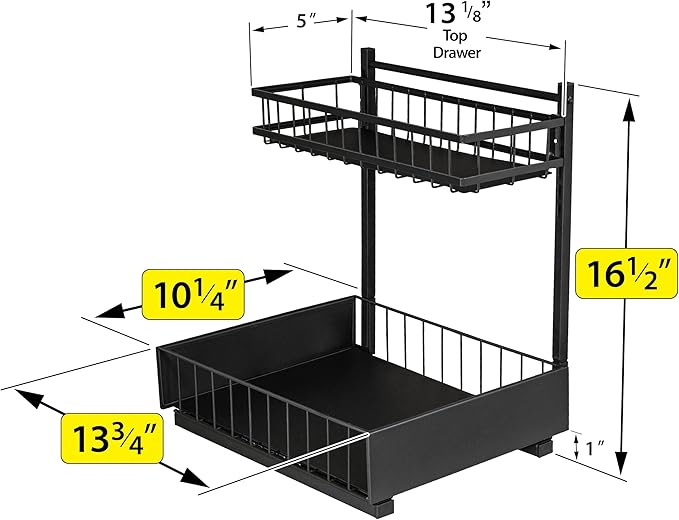 LYNK PROFESSIONAL® Pull Out Under Sink Kitchen Cabinet Organizer - 10" W x 14" D 2-Tier Drawer - Sliding Shelf Organizer for Cabinets and Undersink Storage Shelves - Lifetime Ltd. Warranty – Black