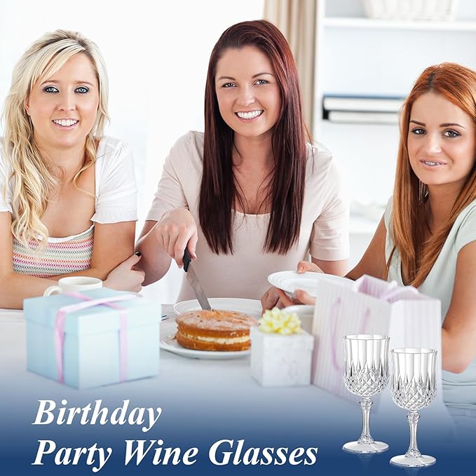 XUWAIDSGN 24 Pcs 7oz Plastic Vintage Wine Glasses Drinking Glasses Unbreakable Wedding Glassware Crystal Water Goblets Reusable Drinkware Vintage Champagne Flutes (24, Clear)