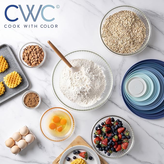 COOK WITH COLOR 12 Pc Glass Mixing Bowl Set with Lids – Borosilicate Glass Nesting Bowls for Cooking, Baking and Meal Prep, Fluted Blue