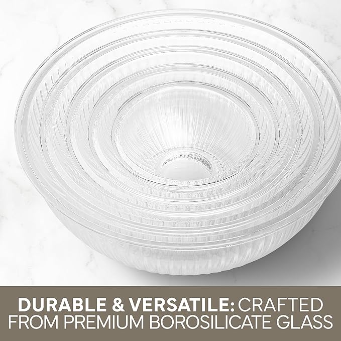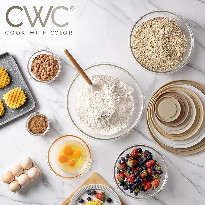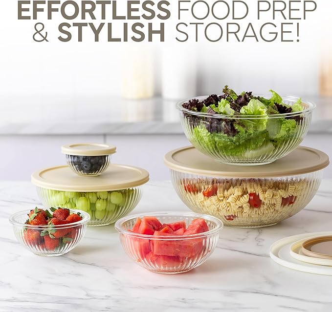 COOK WITH COLOR 12 Pc Glass Mixing Bowl Set with Lids – Borosilicate Glass Nesting Bowls for Cooking, Baking and Meal Prep, Fluted Brown