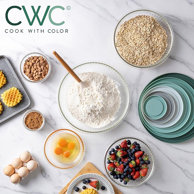COOK WITH COLOR 12 Pc Glass Mixing Bowl Set with Lids – Borosilicate Glass Nesting Bowls for Cooking, Baking and Meal Prep, Fluted Sage