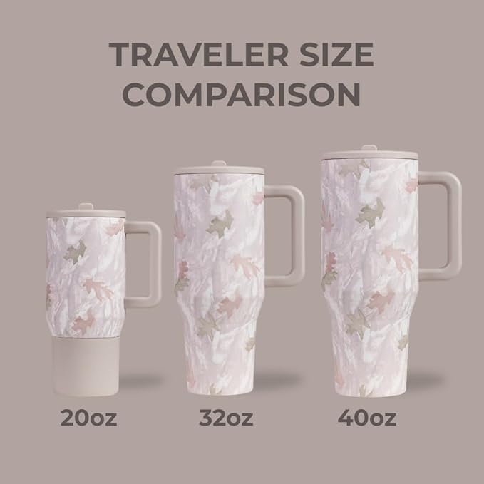 HydroJug Traveler - 40 oz Water Bottle with Handle & Flip Straw - Fits in Cup Holder, Leak Resistant Tumbler-Reusable Insulated Stainless Steel & Rubber Base - Gifts for Women & Men, Camo