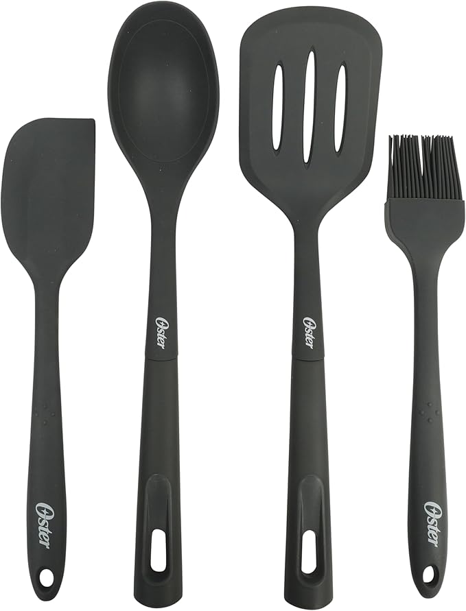 - A COMPLETE SET INCLUDES: Two frying pans (8 inches and 10 inches), one 2-quart saucepan with lid, one 3.2-quart sauté pan with lid, one 5-quart Dutch oven with lid, one silicone brush, one silicone scraper, one silicone slotted turner and silicone spoon from the Oster Platinum Collection