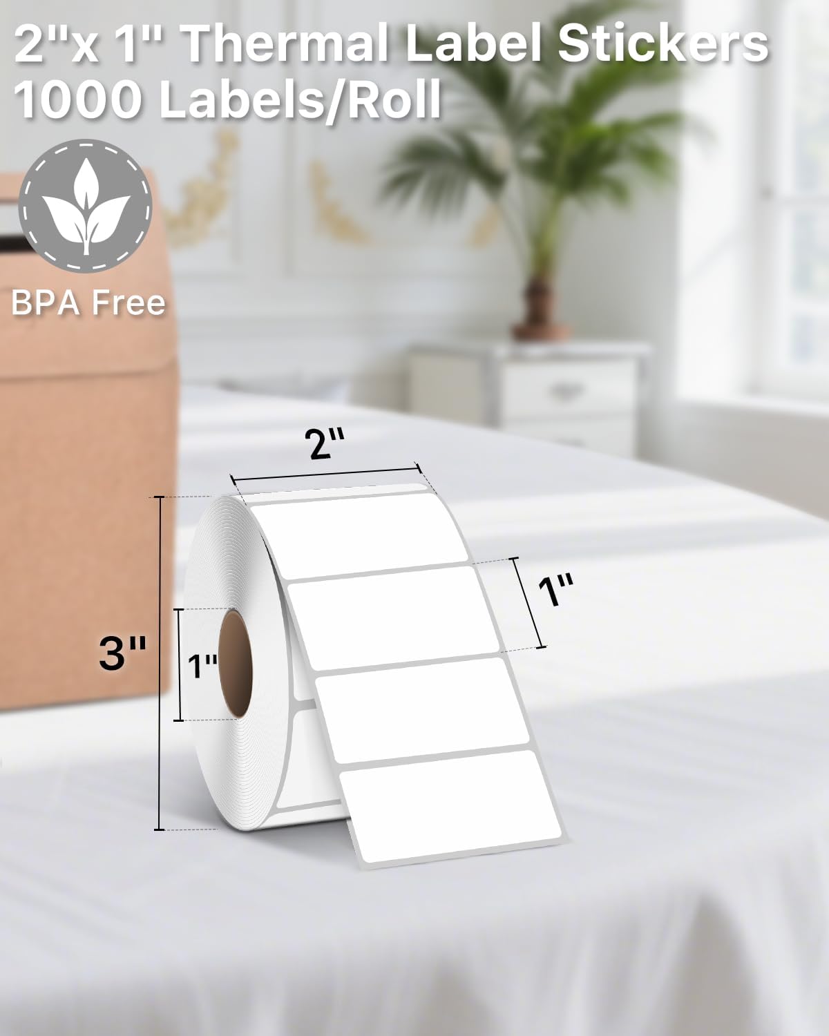 iEager 2x1 Inch Thermal Labels, White Rectangle Thermal Printer Stickers, Durable Shipping Label Printer Sticker for Barcode, Name, Address, 1000 Labels/Roll