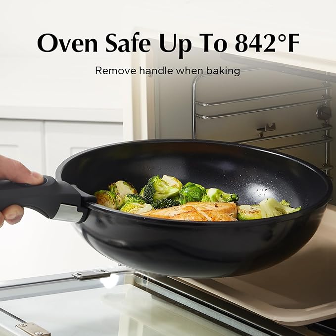 - Ultimate Convenience: Removable handle for the ultimate versatility– go from ALL kinds of stoves to the oven, to the grill, to the fridge, and onto the table in one click! The handle's detachability brings a new cooking style