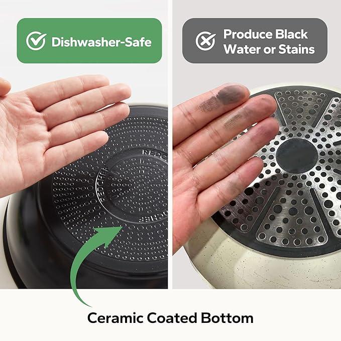 - Healthy Dual-Sided Ceramic Coating: Redchef ceramic pots and pans set boasts an innovative dual-sided ceramic coating, inside and out. This advanced ceramic finish guarantees effortless cleaning, allowing you to effortlessly wash both the interior and exterior of your pots and pans