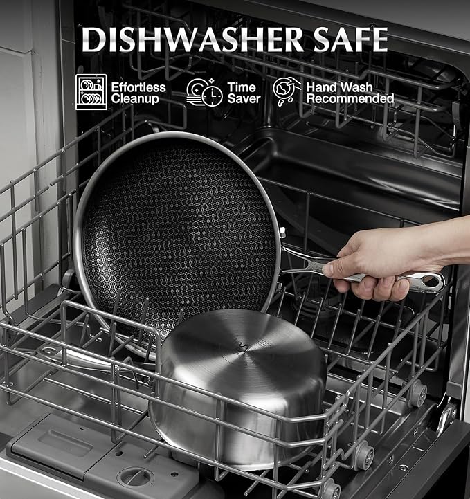 - Hybrid Honeycomb Interior: The innovative hybrid honeycomb design of stainless steel saucepan provides exceptional non-stick performance, allowing for easy cooking. Built for durability, it resists peeling and is safe for use with metal utensils, ensuring long-lasting reliability without compromising food quality