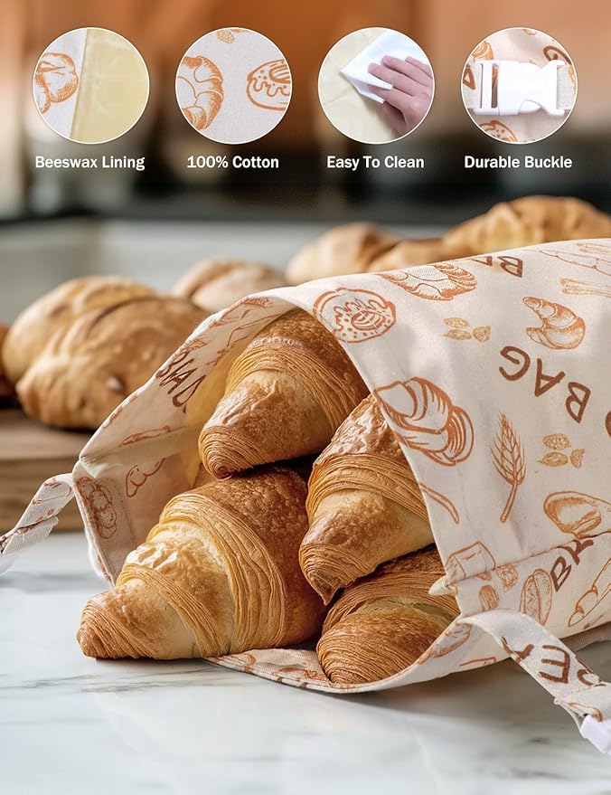- Locks In Freshness - Beeswax layer of the homemade bread bags can effectively prevent the intrusion of moisture and oxygen, protect food from moisture and oxidation, thereby extending the shelf life of food and preventing food waste