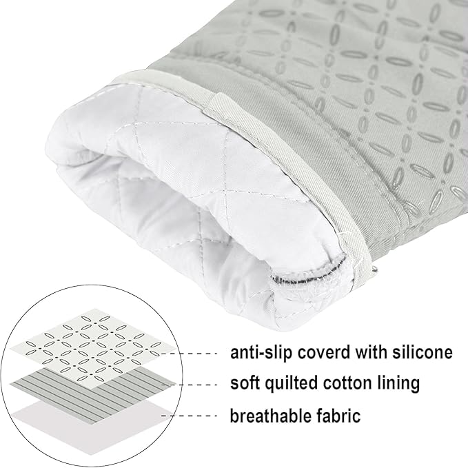 - 500°F HEAT RESISTANT &NON-SLIP: This oven mitts heat resistant 500 degrees because of the durable construction so it can effectively keep you protected from burning while you enjoy cooking and grilling. Enhanced with anti-slip silicone design to provide a more robust, non-slip grip that can be held securely when handling the kitchen utensils