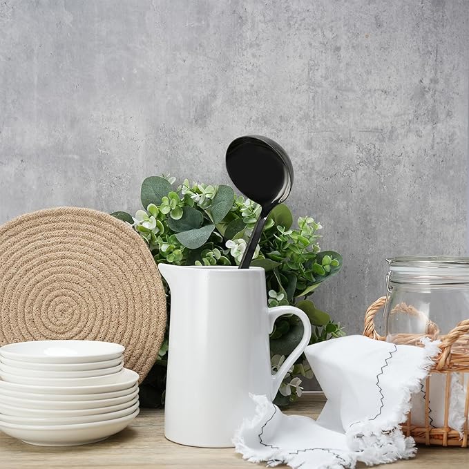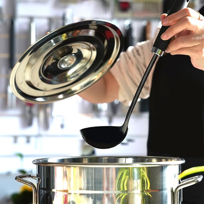 - Perfect Size: The soup ladle design with 12.2 x 3.34 inches, which is the perfect size for ladling soup from deep pots and pouring into serving bowls for convenience and efficiency. Ideal kitchen tool for stews, soups, Italian dishes with sauces such as pasta and homemade pizzas.