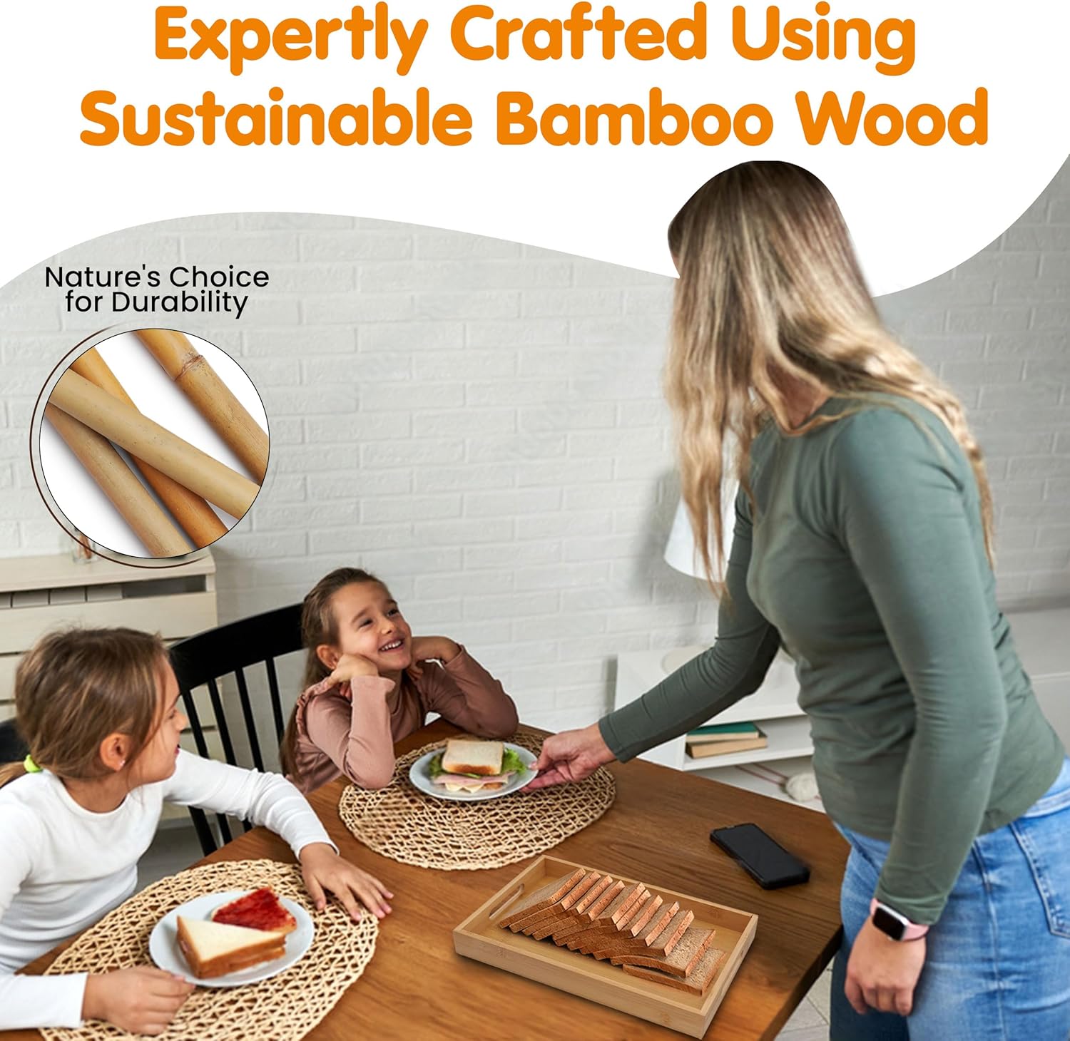 - DURABLE AND VERSATILE MATERIAL: Made from organic moso bamboo, our wooden bread slicer effortlessly cuts thick loaves, making it perfect for slicing sourdough or a bagel with ease. Because of its durability, no more wood splinters in your bread.