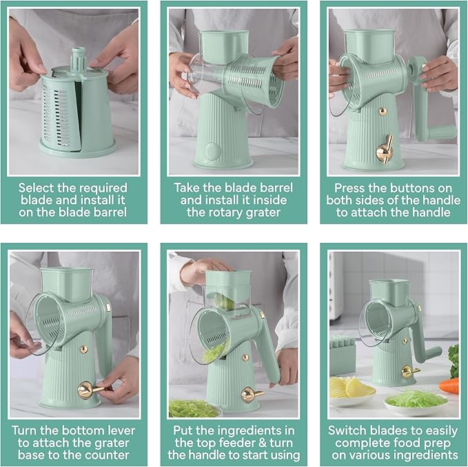 - Hand Crank Grater: Say goodbye to electric gadgets! Our hand crank grater is easy to use and gives you total control over your shredding. Perfect for those who love a hands-on approach in the kitchen!