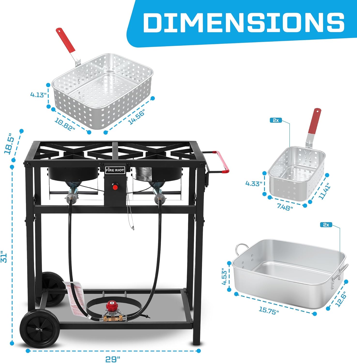 - DELUXE FRYING SETUP: This propane outdoor deep fryer comes with two 18QT aluminum fry pans, one large fry basket, and two small baskets, propane cooker allows you to fry multiple foods simultaneously—ideal for large gatherings. It also includes a stainless-steel thermometer to easily monitor and control the oil temperature.