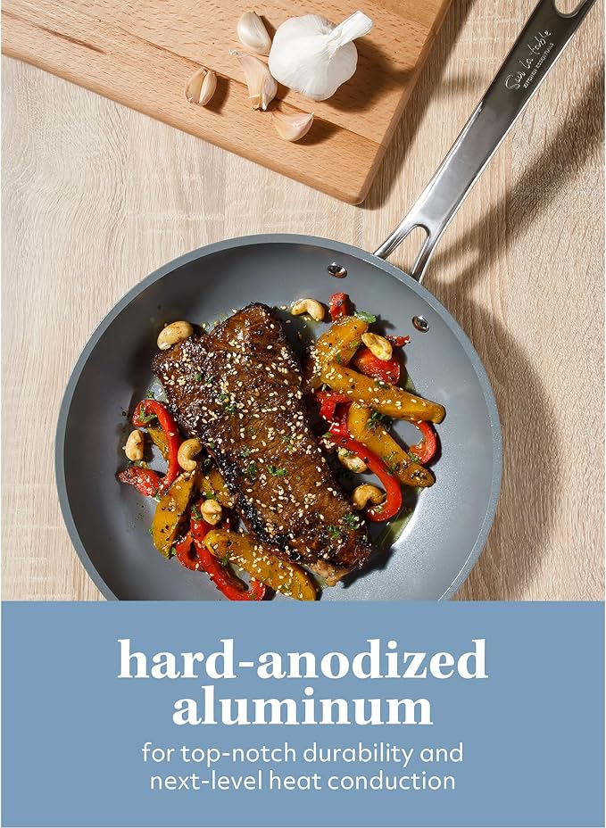 - HARD-ANODIZED ALUMINUM COOKWARE: tougher than traditional aluminum cookware, these pots and pans provide top-notch durability to get through the busiest times in the kitchen. whether you are cooking up a storm or casually making a one-pot dish, this cookware set delivers next-level heat distribution to ensure that any meal comes out evenly cooked and worthy to eat seconds on.