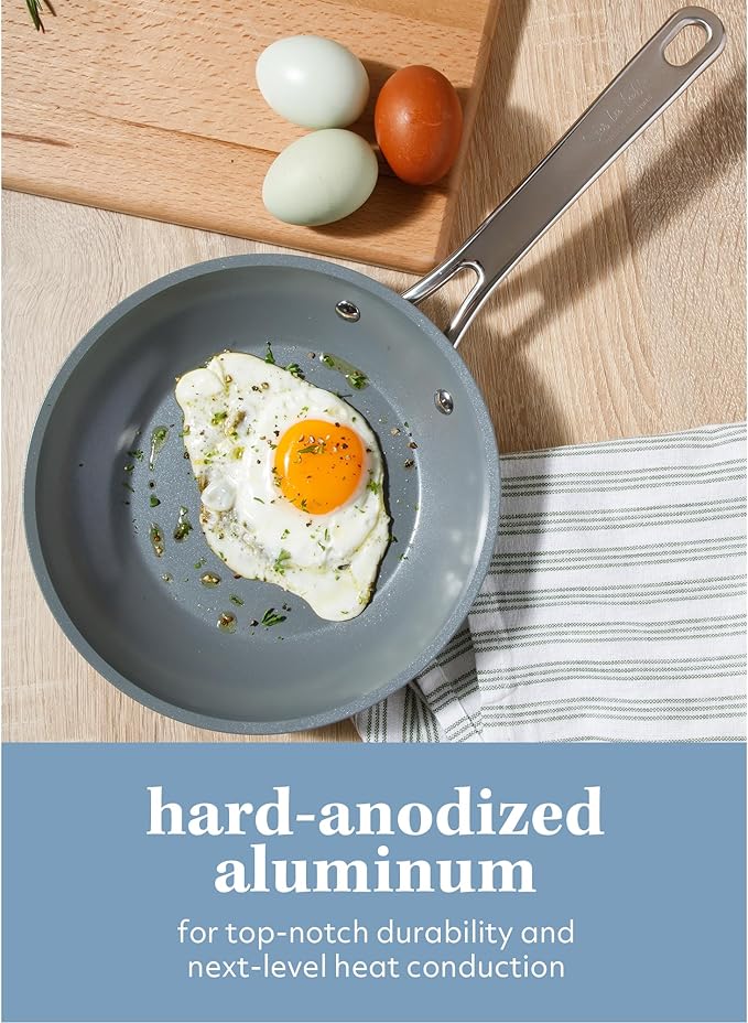 Sur La Table Kitchen Essentials Cool Commune Hard Anodized 10 Piece PFA Free Ceramic Non stick Interior Forged Durable Aluminum Pots and Pans Cookware Set - Blue - Induction Compatible