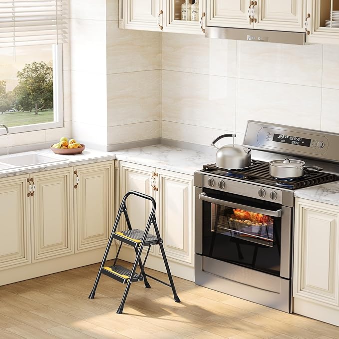2 Step Ladder, Heavy-Duty Pass 800lb Capacity Test, Wide Anti-Slip Steps & Secure Handrail Compact, Folding Step Stool Portable Design for Home, Kitchen, Office, Pantry, Closet Use, Black