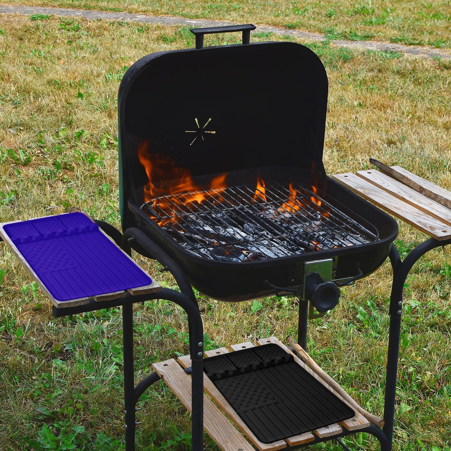 - 【Enhanced Anti-Slip & Anti-overflow Design】Featuring a simple raised vertical stripe anti-slip design, our non-slip grill mat not only securely holds your tools in place, preventing accidental falls, but also facilitates effortless cleaning. Long Drip-pad boasts a raised edge that catches greasy drities and other drips