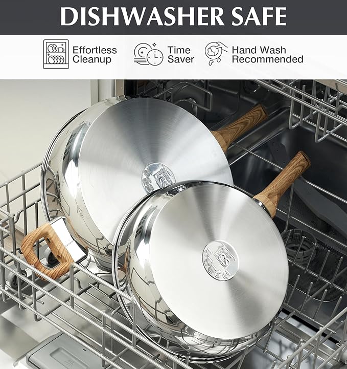 - Efficient & Even Heating for Perfect Results: The triple-layered base of this stainless steel saute pan delivers rapid, uniform heat distribution, minimizing hot spots and ensuring consistent cooking performance. Enjoy flawlessly prepared dishes with ease, every time.