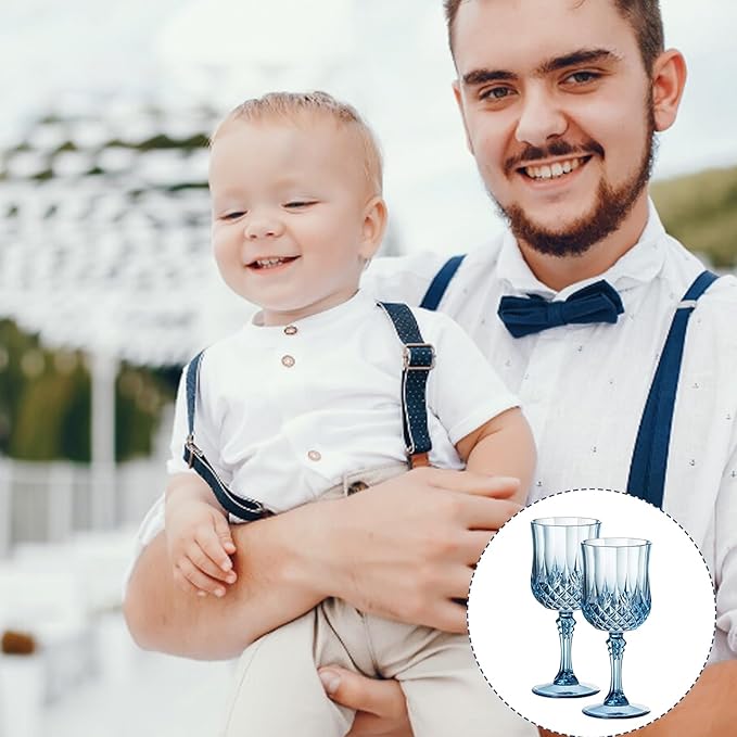 XUWAIDSGN 24 Pcs 7oz Plastic Vintage Wine Glasses Drinking Glasses Unbreakable Wedding Glassware Crystal Water Goblets Reusable Drinkware Vintage Champagne Flutes (24, Blue)