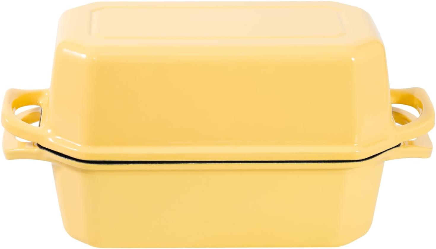 Bread Pan Cast Iron Loaf Pan with Lid Bread Loaf Pan 9x5 Inch Loaf Pan Enameled Cast Iron Sourdough Loaf Pan, Yellow