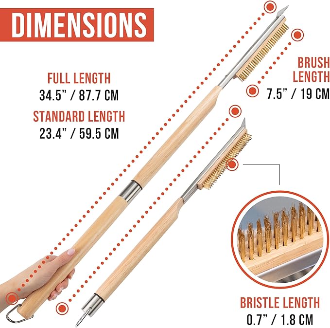 - DURABLE BRISTLES: Built to last, the stainless steel bristles and heat-resistant brush head outperform natural fiber alternatives. Essential for pizza oven brushes and pizza tools, ensuring they won’t melt or singe during use.