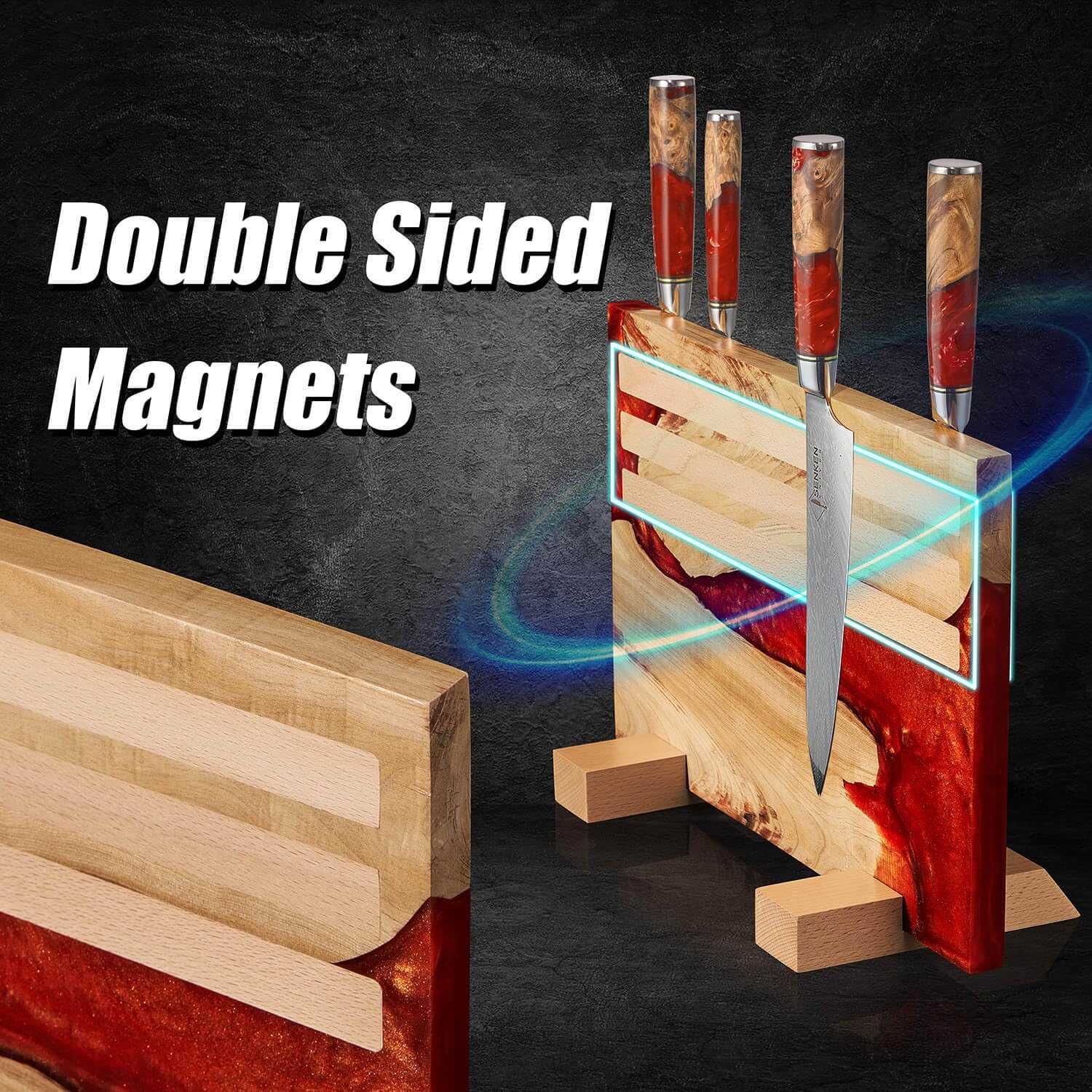 SENKEN "Red Tsunami" Extra Large Magnetic Knife Block - Holds Up to 16 Knives - Knife Block without Knives, Universal Knife Holder, Beautiful Red Resin & Natural Wood Blend ("Crimson" Red Resin Blend)